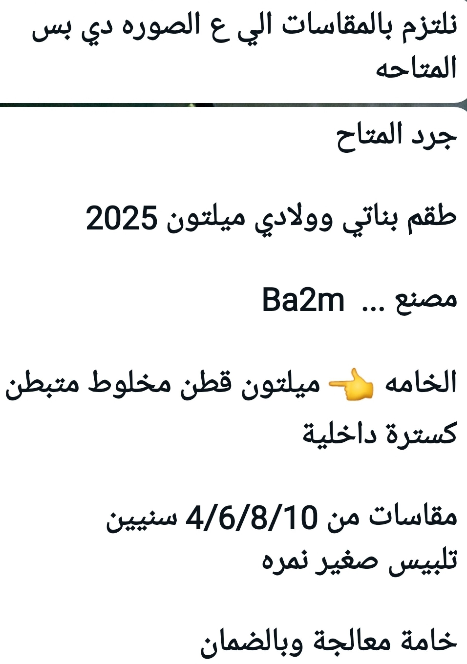 نلتزم بالمقاسات اللى على الصوره للطلبات على رقم ٠١٠٩٢٨٣٠٣٣٣